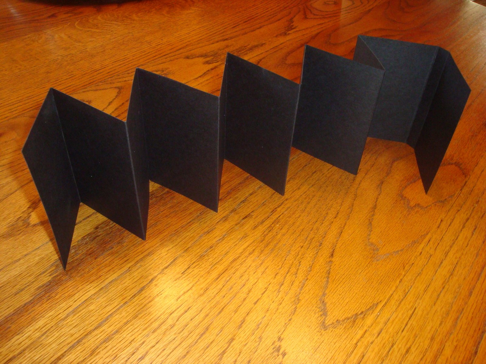 This will yield a piece with three 3”x 4 ½” panels and one 2” x 4 ½” panel. Accordion fold the piece and set it aside. Repeat the scoring with the remaining 2 pieces, accordion folding each of them as well.